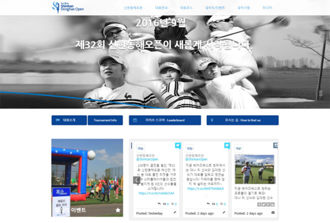 사이트 보기ZoomDetails 신한동해오픈 공식사이트portfolioBy mafigotan2016년 9월 22일IMG KOREA 신한동해오픈 골프대회 공식 웹사이트 웹사이트 리뉴얼 개발 및 유지관리 2016년 8월