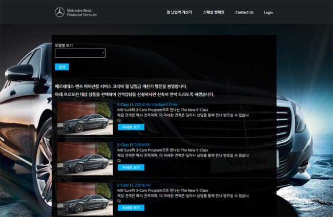 ZoomDetails Finance CalculatorportfolioBy mafigotan2016년 9월 22일메르세데스-벤츠 파이낸셜 서비스 코리아 Finance Calculator(월납입액 계산 시스템) 사이트 개발 및 유지관리 2016년 9월