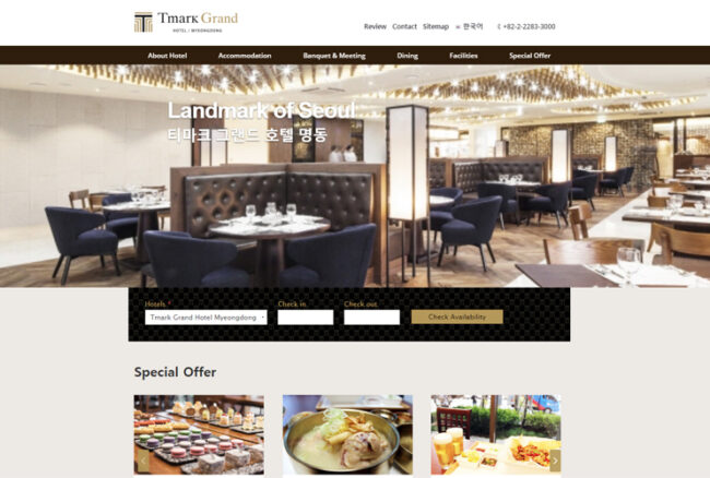 사이트 보기ZoomDetails Tmark Grand HotelportfolioBy mafigotan2016년 9월 22일티마크그랜드호텔 기업 공식웹사이트 웹사이트 개발 및 유지관리 2016년 5월