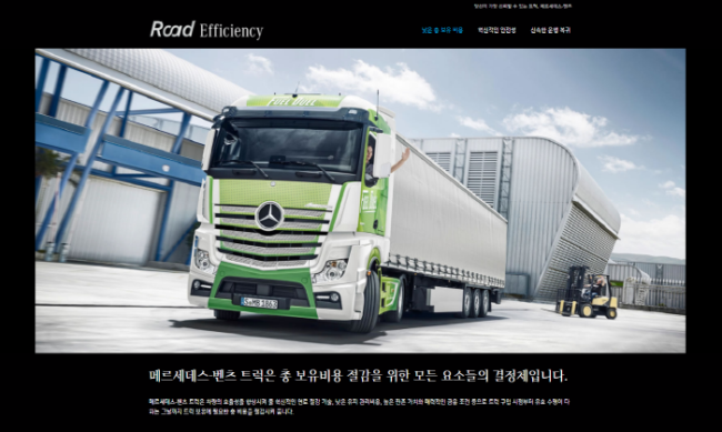 사이트 보기ZoomDetails RoadEfficiencyportfolioBy mafigotan2017년 9월 13일다임러 트럭 코리아 마이크로 사이트 사이트 개발 및 유지관리 2017년 5월