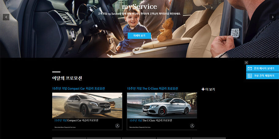 메르세데스-벤츠 파이낸셜 서비스 코리아 공식웹사이트 사이트 리뉴얼 개발 및 유지관리 2018년 1월 사이트 보기Project navigationPreviousPrevious project:RoadEfficiency