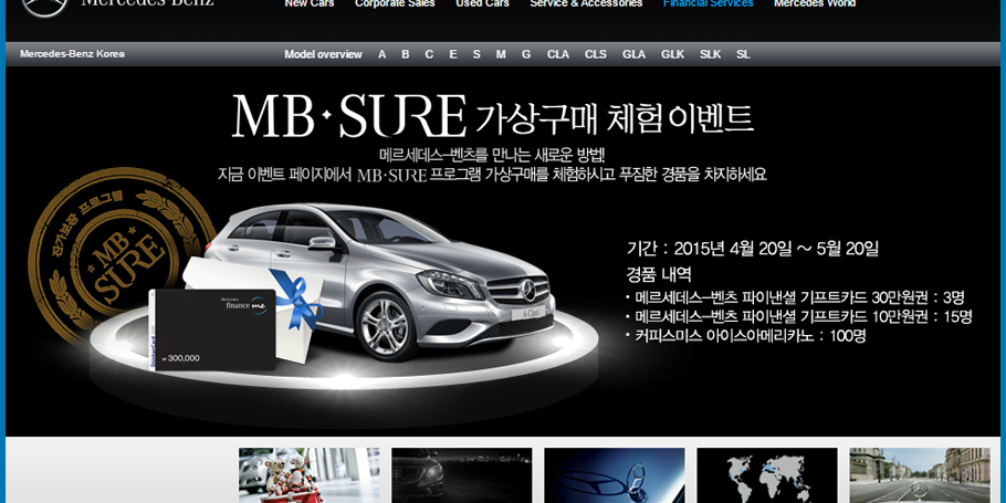 메르세데스-벤츠 파이낸셜 서비스 코리아 공식 웹사이트 웹사이트 유지관리 2011년 부터 현재까지 Project navigationPreviousPrevious project:메르세데스-벤츠 코리아NextNext project:예음여행사